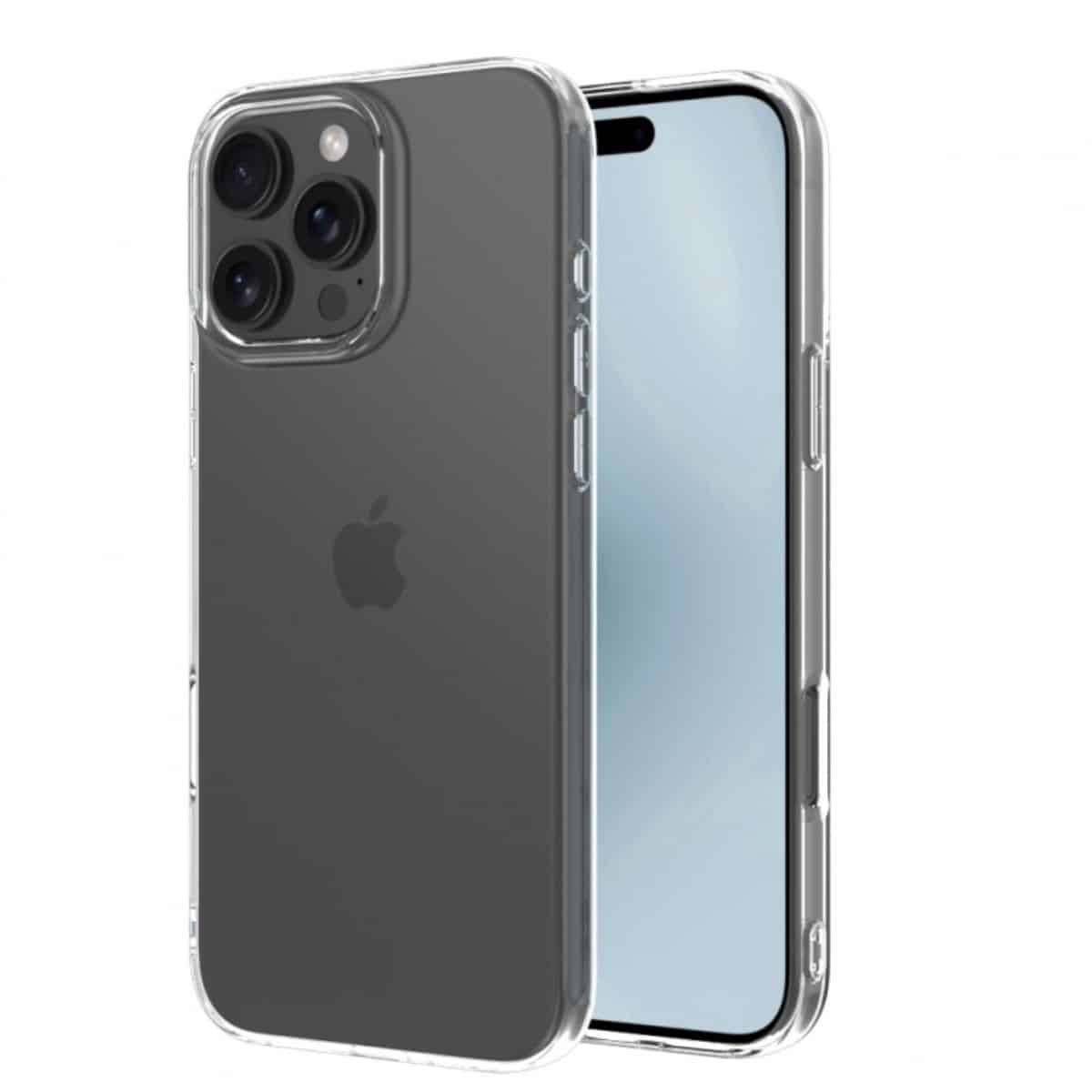 Capa iPhone 16 Pro Max transparente em silicone, fina, leve e discreta, com proteção extra na zona da câmara. Recortes precisos para botões e entradas e proteção contra riscos, poeira e pequenos impactos.