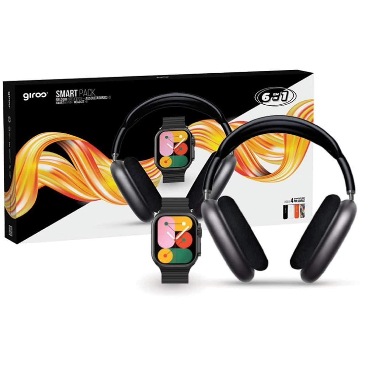 SmartWatch + Auscultadores + 4 Braceletes – GIROS