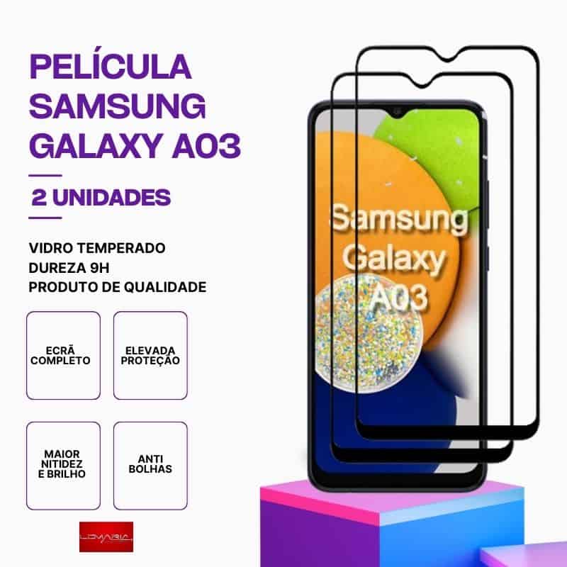 - ✔️ Película de vidro temperado 9H para Samsung Galaxy A03 – proteção anti-riscos e aplicação fácil.